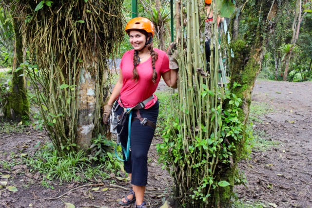 zip lining Published April 3, 2016 at 640 × 427 in Mindo, Ecuador: the Adventurer’s Day Trip from Quito ← Previous Next → Me about to go zip lining and feeling like I was super crazy for leaving solid ground